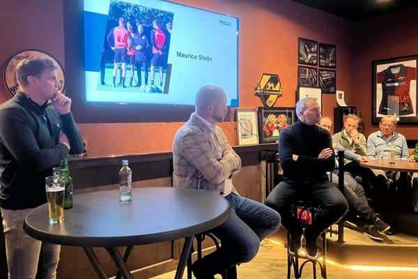 Na de borrel stelt Bas Voermans hoofdgast Maurice Steijn voor en geeft op een ludieke wijze een toelichting op hun samenwerking bij Sparta! De voormalig trainer van ADO Den Haag,, NAC en Sparta Rotterdam én Ajax behoeft weinig introductie,