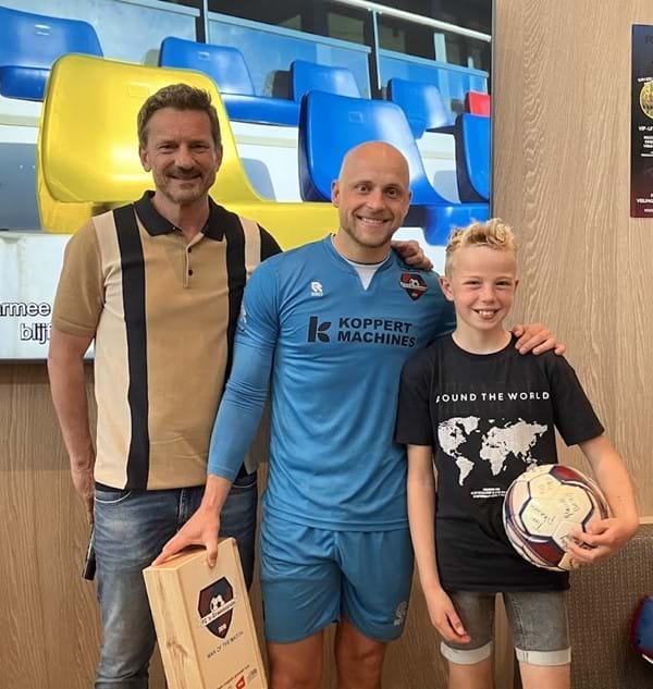 Edgar Leerdam ontvangt van Commercieel Manager John Schonewille en Quint Schwagermann de pupil van de week de prijs voor de Man of the Match