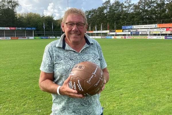Balsponsor Peet van der Helm van "Eetcafé de Witte" trots met de wedstrijd bal