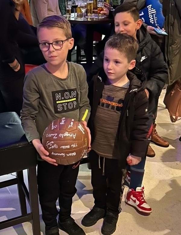 De jeugd van balsponsor SAR Wandhangers met de wedstrijdbal